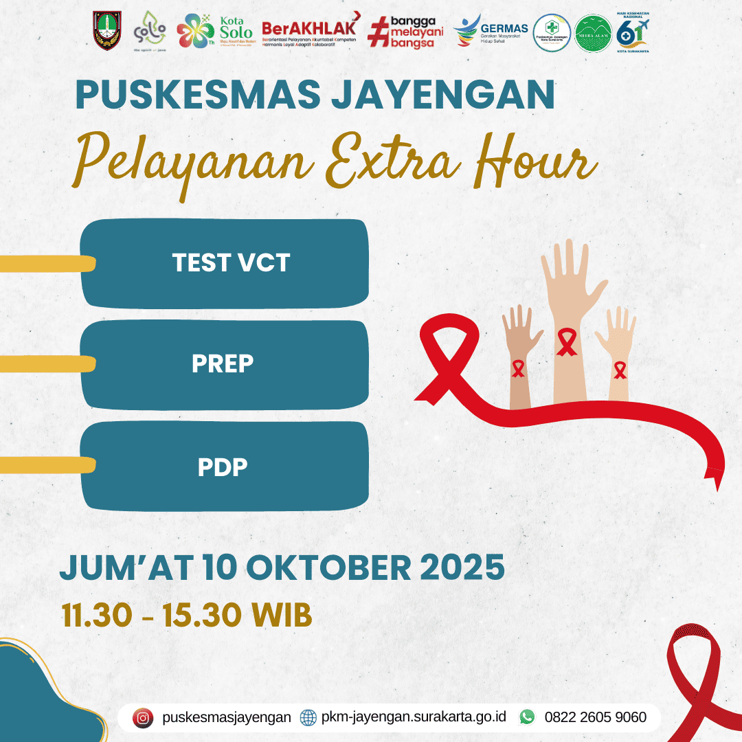 Berikut mengenai Informasi Jadwal Pelayanan Extra Hour yang akan diadakan di Puskesmas Jayengan🕒 Pelayanan Extra Hour Puskesmas Jayengan📅 Jumat, 10 Oktober 20...